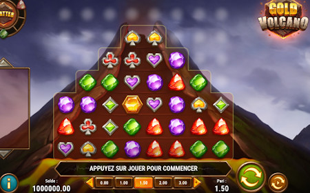 La machine à sous Gold Volcano vous accueille dans un décor inquiétant avec un ciel sombre et parsemé d'éclairs. L'écran prend les traits d'une pyramide qui épouse les formes du volcan et à travers laquelle la lave remonte petit à petit à la surface. Il se compose de 8 rouleaux avec une structure asymétrique comprenant 3 à 6 rangées. Il ne propose pas de lignes de paiement à proprement parler. Pour empocher des gains, vous devez collecter 3 à 6 symboles identiques à l'écran. Comme il fallait s'y attendre avec la structure choisie par le fournisseur et surtout le thème du volcan, le jeu intègre un gameplay évolutif avec un mode de paiement en cascade. Chaque fois que vous obtenez un gain, les symboles correspondants disparaissent et sont remplacés ce qui permet de débloquer de nouvelles opportunités. Lorsque vous enchainez 6 cascades, vous accédez d'ailleurs au mode free spins. Le jeu vous octroie 5 tours gratuits durant lesquels les symboles font agir comme la lave et sortir par le haut de l'écran afin de créer de nouvelles rangées et des rouleaux inédits. Gold Volcano inclut également d'autres bonus, dont un WILD. Il peut apparaitre à tout moment après une cascade. Il a le pouvoir de remplacer n'importe quel symbole dans une combinaison gagnante. Le WILD peut également être accompagné d'un multiplicateur X2 inédit. Le jeu propose aussi un SCATTER sur l'ensemble de ses rouleaux. Il est relié à une jauge qui vous permet de transformer des symboles normaux en pépites d'or. Obtenez-le 3 fois pour éliminer les pierres violettes, 6 fois pour les pierres rouges et 9 fois pour les vertes. Enfin, Gold Volcano inclut trois évènements aléatoires. Ils se déclenchent après un spin perdant. Le premier, Rumble, déplace des symboles au hasard et ajoute un SCATTER. Le deuxième, Lava, vous offre une rangée supplémentaire de symboles. Le troisième, Excavate, ajoute 3 à 5 WILD à l'écran.