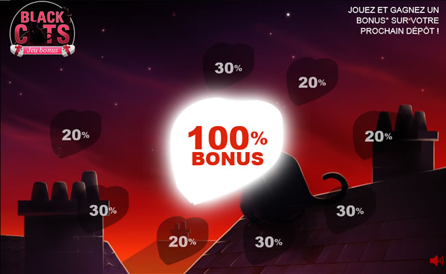 Pour vous aider à célébrer la Saint Valentin comme il se doit en offrant un cadeau hors de prix à votre partenaire, circus.be vous propose un nouveau jeu. Dénommé « Blackcats », ce jeu vous permet de remporter un bonus de dépôt de 20 %, 30 % ou 100 %. Pour découvrir votre bonus, il vous suffit de cliquer sur un des nombreux cœurs qui apparaitront sur votre écran. Ce bonus sera valide sur votre prochain dépôt réalisé entre le 13 et le 15 février.