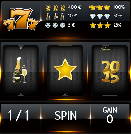 Si vous souhaitez tenter votre chance et ainsi recevoir votre part, il suffit de vous rendre sur le site casino777.be puis de vous connecter à votre compte. Dirigez-vous ensuite vers l'onglet réservé à l'offre promotionnelle « machine à cadeaux ». Une fois à destination, faites tourner la machine et découvrez le cadeau qui vous permettra de terminer cette année sur une note positive. Vous avez du 29 au 31 décembre pour essayer de sublimer votre année2014 !