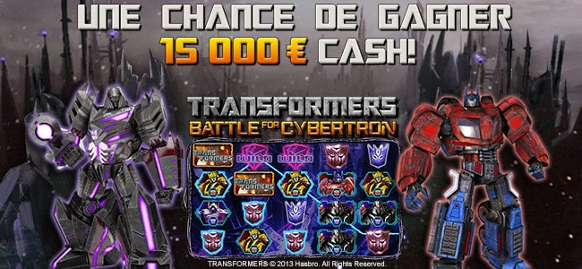 TRANSFORMERS BATTLE FOR CYBERTRON est un jeu qui se déroule dans l'espace avec les célèbres personnages du dessin animé TRANSFORMERS. C'est un jeu passionnant avec de magnifiques graphismes et rempli d'actions déroutantes qui permettent de gagner de grosses sommes d'argent. Mais plus intéressant encore, le prizepool actuel est de 15 000 € ! En effet, la casino en ligne Casino777.be vient de lancer sur sa plateforme TRANSFORMERS BATTLE FOR CYBERTRON avec à l'appui, une grosse offre tombola qui permettra de distribuer 15 000 € de prix ! Tous ceux qui aiment les jeux d'action sont invités à profiter de cette opportunité unique offerte par Casino777.be et par l'entreprise IGT (fournisseur de jeux).