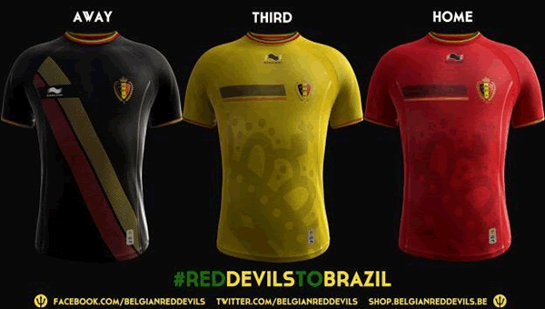 Voici les maillots que porteront les Diables Rouges pendant la Coupe du Monde 2014 au Brésil.