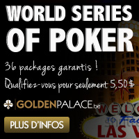 jeudi 11 Avril 2013 C'est la première étape vers Las Vegas... A cet effet, Golden Palace organise des tournois satellites de qualification dont l'enjeu est l'un des 36 packages d'une valeur de 4200 $. Les challenges ont déjà débuté et il y en a en moyenne 10 chaque jour dont le buy-in est à 5,5 $. Pour ceux qui préfèrent relever directement le défi du package en finale, ils peuvent s'inscrire directement en payant un buy-in de 320 $. Les fi...