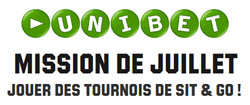 mardi 3 Juin 2014 Voici les 5 missions qui vous incombent ce mois de Juin sur Unibet Pour accéder à vos missions, loguez-vous ou créer un compte sur le portail Unibet.be. Mission 1 : Complétez des tournois. Vous devrez jouer un tournoi sur 3 jours consécutifs pour toucher la récompense : euro 4 valable au Fast Hold'em NL4 Ticket. Mission 2 : Jouez au Fast Hold'em. Pour gagner un ticket de euro 4 Sit & Go, votre mission sera de voir un Flop s...